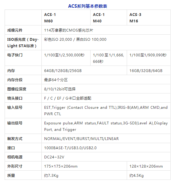 ? ? ? ?ACS系列采用了最新的芯片傳感器,ISO值高達(dá)10萬!因此無論是針對弱光環(huán)境,還是以高幀率拍攝熱敏感物體,或者使用光圈極小的放大光學(xué)系統(tǒng)的圖像時(shí),也能獲得明亮清晰的圖像。