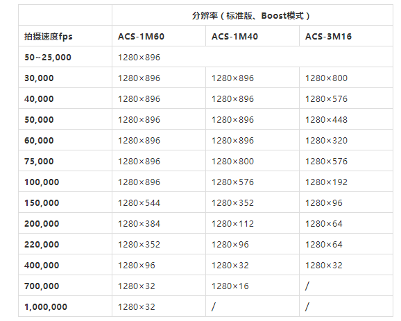 ? ? ? ?2018年日本nac Image Technology公司針對1280×896(1.14M Pixel)像素級(jí)的高速攝像機(jī)推出了ACS系列,2020年又將ACS系列進(jìn)行整體升級(jí),推出了市場上首款拍攝速度達(dá)到10萬fps(百萬像素下)的Memrecam ACS-1 M60。ACS-1 M60采用適配性超高的1280×896 CMOS傳感器,滿幅拍攝速率可達(dá)到60,000幀/秒(彩色芯片)100,000幀/秒(黑白芯片);超高的拍攝速率可達(dá)到1,000,000幀/秒(標(biāo)準(zhǔn)版);具有超高感光度(ISO-Daylight SAT):100,000(黑白)/20,000(彩色)。納秒級(jí)的時(shí)間精度,使其具有更高的幀速率、幀同步及曝光精度;500ns的跨幀模式曝光時(shí)間間隔,使其可完全滿足PIV/PTV/LIF/DIC等非接觸式測量應(yīng)用的需要,無圖像滯后;另有超大內(nèi)部存儲(chǔ)器1TB可選配;可連接模擬和數(shù)字監(jiān)視器實(shí)時(shí)顯示拍攝圖像,通過觸屏或JPAD控制器進(jìn)行控制攝像機(jī),無需將其與PC連接,可適用于各種需要考慮環(huán)境條件的應(yīng)用;與PC連接時(shí),還可通過專用的USB3.0線纜進(jìn)行數(shù)據(jù)的高速下載存儲(chǔ),速度遠(yuǎn)高于傳統(tǒng)的千兆網(wǎng)線。